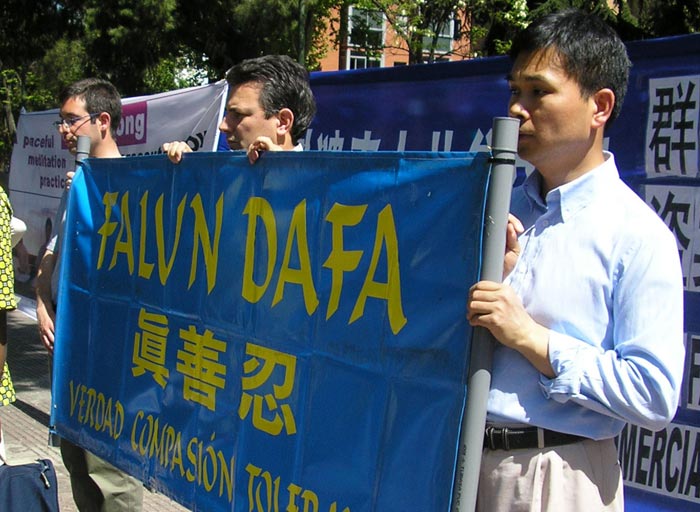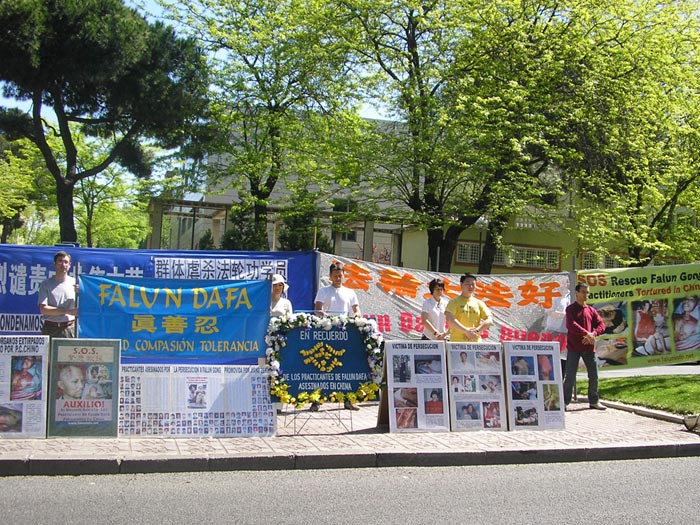 ![]() 西班牙法轮功学员在中使馆前纪念四·二五,抗议中共迫害 |