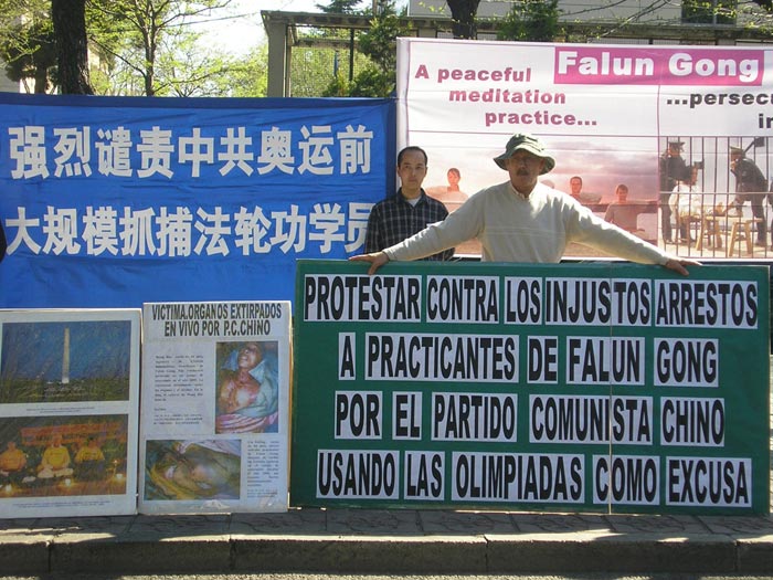 人权律师卡洛斯先生也来到大使馆前参加纪念活动。他说:“中共江泽民集团对法轮功学员实施群体灭绝的罪行终将受到法律制裁。现在西班牙法院正在就江集团迫害法轮功学员的罪行展开调查。我们坚信不久的将来,中共江氏邪恶集团将站在人类历史的审判台上接受人民的审判。迫害正信,人间法律不容,天理更不能容!”