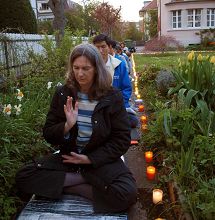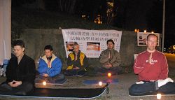 一点点烛光,纪念那些在过去近九年中被中共迫害致死的法轮功学员;一幅幅照片,揭露中共迫害法轮功学员的种种罪行;强大的正念,清除一切不正的因素,也希望使领馆的工作人员能够真正的了解真相,不要再助纣为虐,成为迫害好人的帮凶。