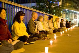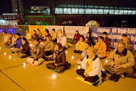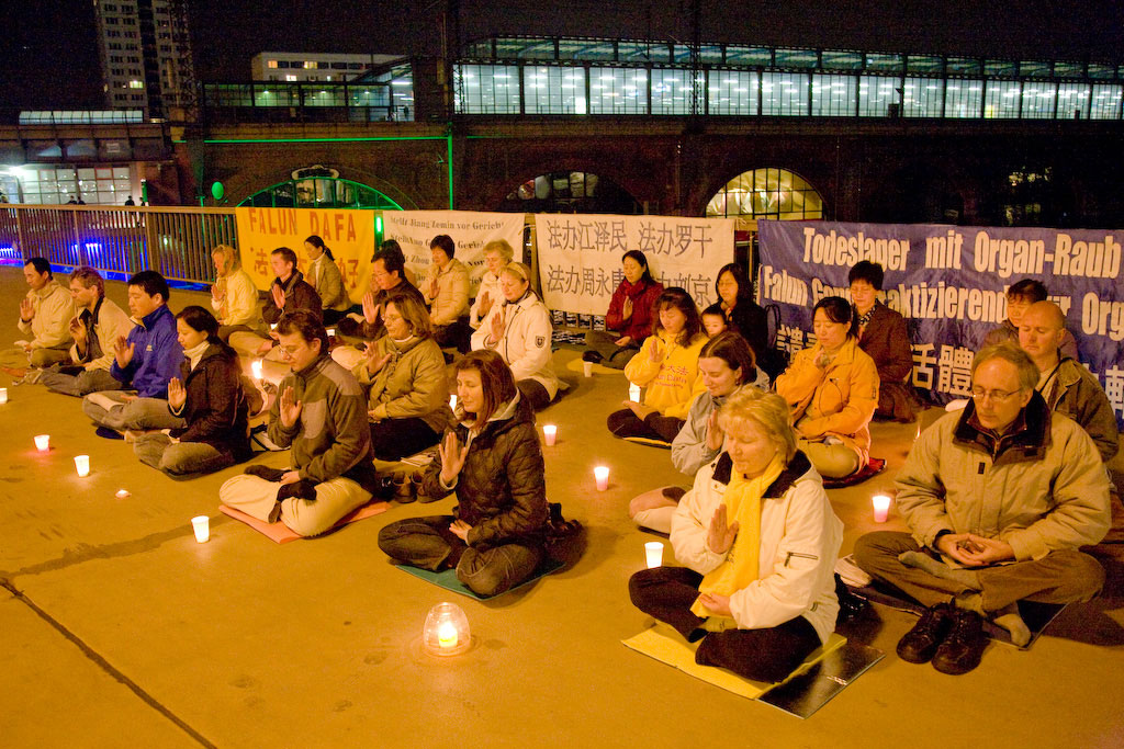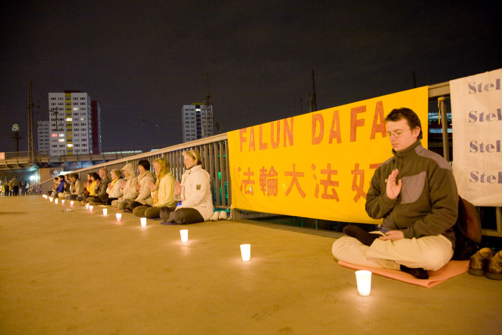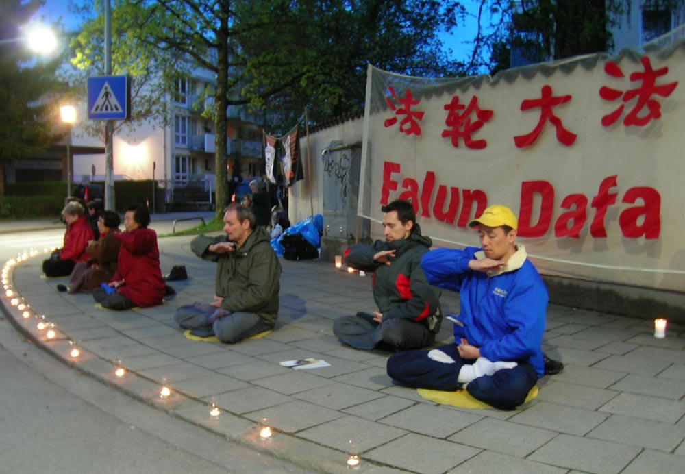 同一时间,在另外三个德国城市法兰克福(Frankfurt),慕尼黑(Munich)和汉堡(Hamburg),法轮功学员也在中共领事馆前举行了烛光守夜活动,纪念九年前的这一天,同时也抗议中共对法轮功迫害的升级。