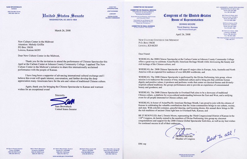 堪萨斯政要贺电迎神韵(图) 【明慧网】