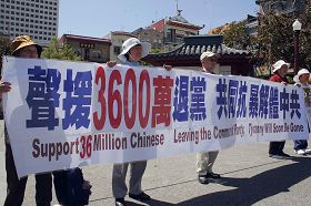 黄先生说,如果我们今天生活在中国,通过我们付出的劳力挣来的钱,这是共产党的功劳吗?当然不是,那是你自己的功劳。为什么以前中国的百姓那么穷,现在稍微好一点?是共产党把套在老百姓脖子上的枷锁松开了一点,名曰所谓的开放。我们就是要告诉中国同胞,共产党假恶暴的本质。我们今天欢庆三千六百万中国人退出中共,我们很快就要欢庆没有共产党的新中国。