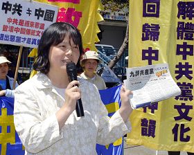 杨博士表示,中国人都为身为中国人而感到自豪,因为中国有五千年博大的中华文明。但是在中共的破坏下,中华文明几乎荡然无存。佛教、道教和儒家的宝贵遗产几乎被中共摧毁殆尽,中共带给人的是一场浩劫。杨博士宣读了大.纪.元;关于退!党!的声明,她呼吁中国人尽快退出中共,保平安。