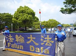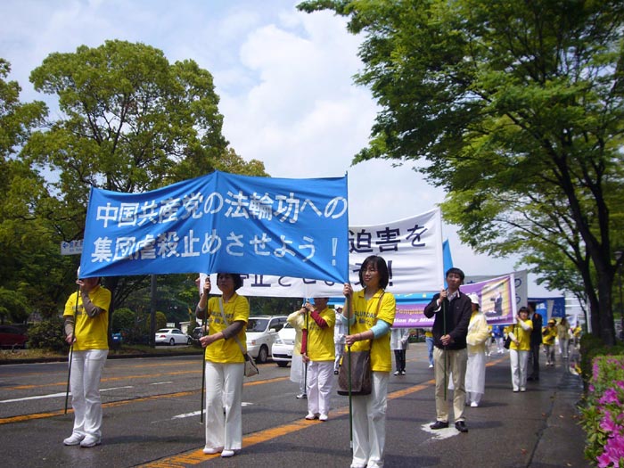 大游行,同时,天国乐团也第一次亮相名古屋,引起很多路人驻足观看,并了解法轮功在中国受迫害的真相。学员们在第九个4.25来临之际,共同抗议中共暴行,要求立刻停止对法轮功的迫害。
