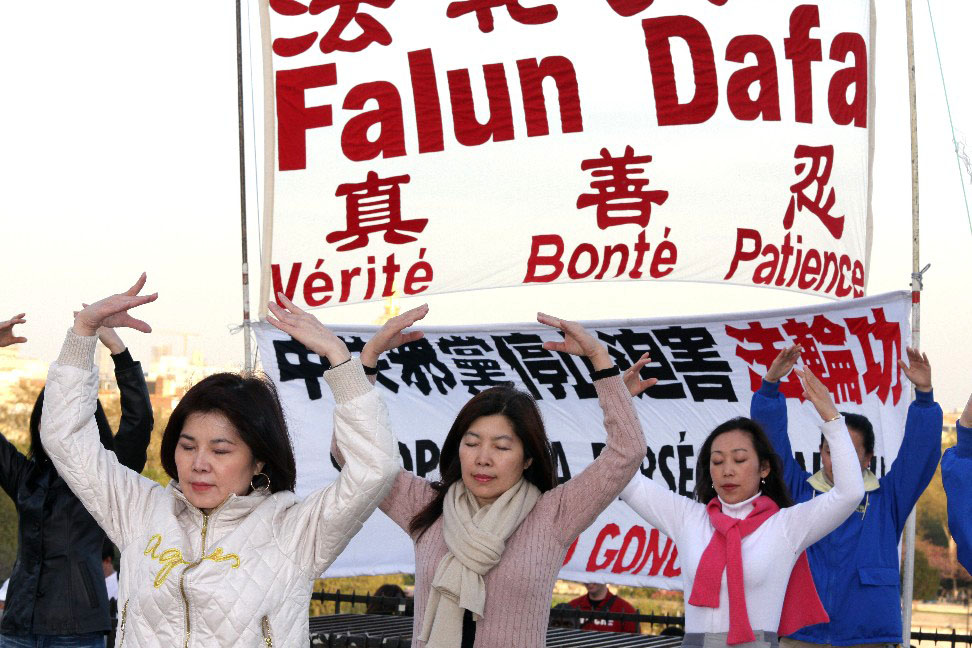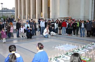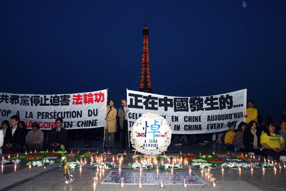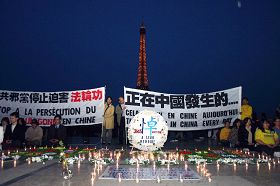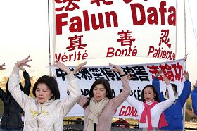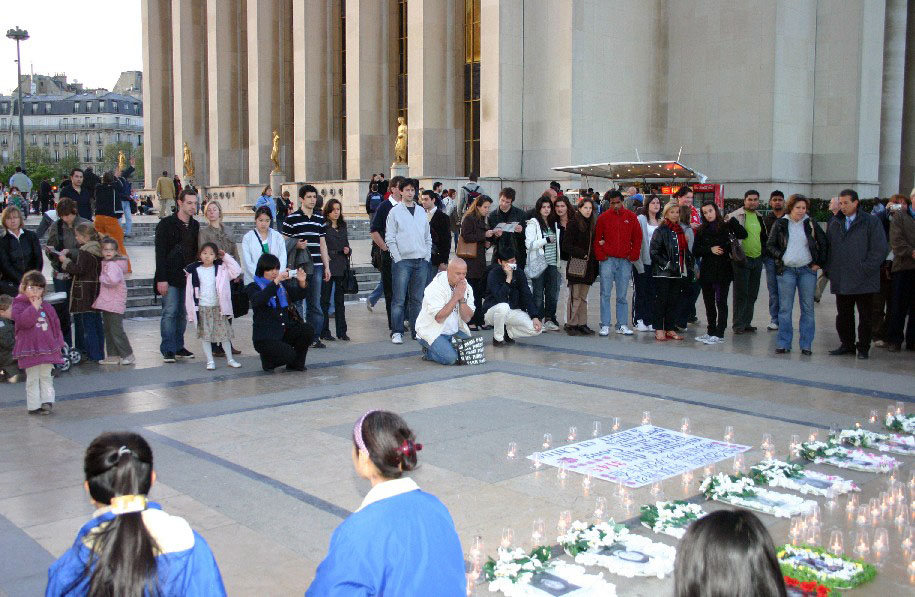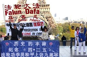 ![]() 法轮功学员在巴黎自由与人权广场集会纪念法轮功学员4.25和平上访九周年,并揭露中共借奥运之机抓捕法轮功学员。 |