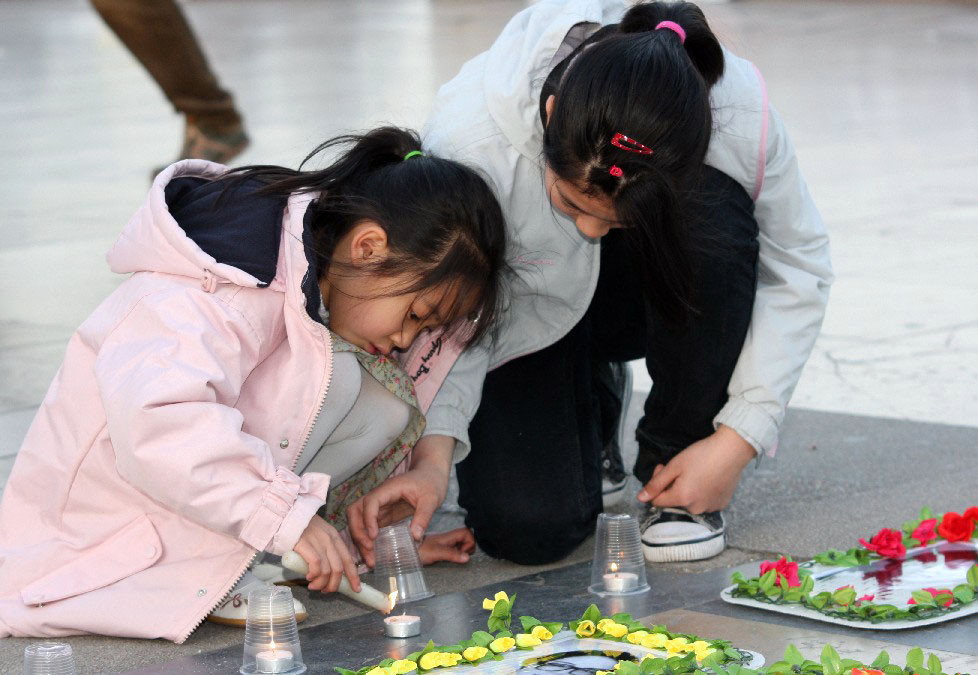 法轮功学员用一支支蜡烛拼成3145字样,表示目前已被证实有3145名法轮功学员被中共残酷迫害致死,烛光包围着被迫害致死的学员遗像,一个大大的“悼”字让现场的气氛如此凝重、肃穆、又带有一些悲伤。法轮功学员们静默端坐,悼念同修,神态祥和慈悲又带着理性和坚韧。善良的人们被感动了,默默的站在那里,共同悼念死者,有的双手合十似乎在为死者祈祷,有的悲伤的掉下眼泪,有的在法轮功学员的遗像前放上鲜花,有的甚至与法轮功学员们端坐在一起。
