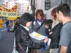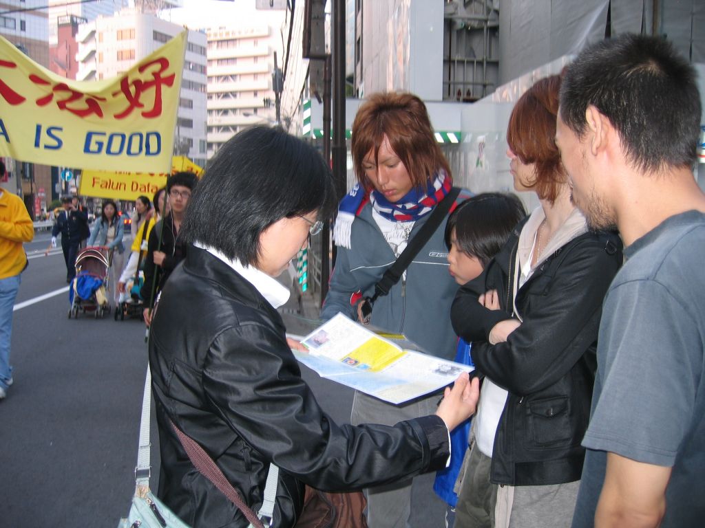 一位不愿透露姓名的日本老年妇女说,“没有做错任何事,仅仅因为炼功就遭到那样的迫害,甚至被活体摘取脏器,我看到照片眼泪就不由的流出来了,我感到震惊,这绝不能容许。看到小孩子(指法轮功小弟子)们也在努力的向人们发资料,我很感动。”