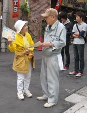 ![]() 法轮功学员向路人讲真相 |