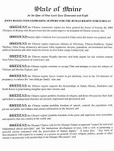 我们,第一百二十三届立法机关的成员现在聚集在第二正常会议上,代表我们的人民,宣布我们对人权圣火传递活动的支持,并且褒奖二零零八年四月为人权圣火传递月;并且进一步决定