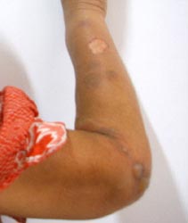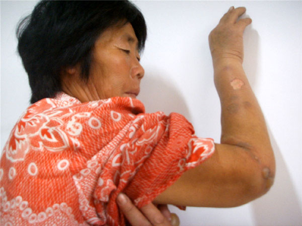 ![]() 大法学员桑春莲被警察烧伤后的照片 |