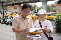 林先生说他在路旁观看很久,看到经过的人都很有感受,他说:“就象刚刚有人发一些传单和莲花,所有的人,我看没有一个人想拒绝的。”他感觉那些人应该和他一样,都很想要多一层了解法轮功,但苦无机会,因此他说这样的游行很好,刚好让他有机会看到法轮功,他感到很高兴也很期盼。当记者告诉他如何上明慧网获得大法更多讯息和义务教功的炼功点时,林先生非常专注并且重复念着“明慧网”,一付紧紧握住千载难逢机会的神情,并且不断的表示感谢。