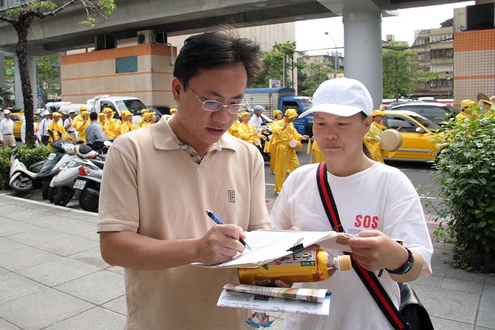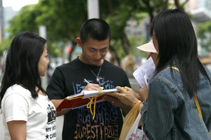 ![]() 民众了解法轮功受迫害真相后,在支持反迫害联署上签下自己的姓名 |
