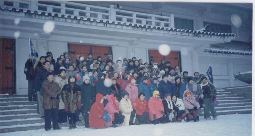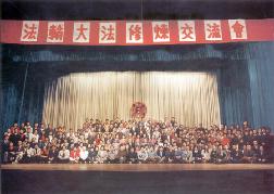 第二次:九七年的年底跨年到九八年的元旦,台湾学员去长春学法交流。九七年十一月中旬师父来台湾讲法,因此我们安排这次到师父的故乡长春,台湾学员去他们晚上的学法交流会,他们特别礼遇我们,在三十几平方米的地方中间摆了很小的凳子让我们坐,他们平常就挤满了一、二百个人。里面开暖气,来的迟的人没有位子,就坐在外面的铁栏杆上。