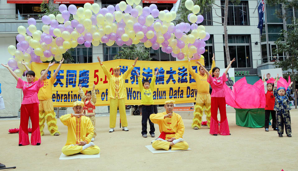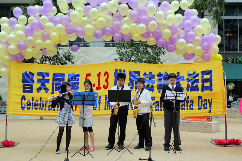 游行后,墨尔本法轮功学员在城市广场举行文艺演出、他们以音乐、歌舞的形式,表达对师父、对大法的歌颂和感激。广场上还有图片展,吸引了很多路人来主动了解法轮功真相。