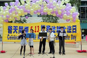 五月十三日世界法轮大法日,对世界各地的法轮功学员而言是一个极其特殊而神圣的日子,一九九二年五月十三日,法轮功创始人李洪志先生将法轮大法洪传于世;经过十六年的风风雨雨,秉持“真、善、忍”法理修炼的修炼者,目前已遍布全世界八十多个国家和地区;特别是一九九九年以后,法轮功学员顶住了来自中共史无前例的残酷迫害,坚守着他们的信仰,谱写了人类历史的新篇章。