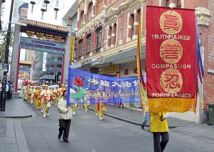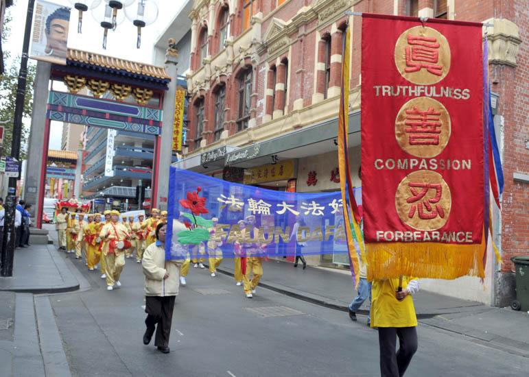 游行队伍散发出慈悲的能量令人深深感动,路人纷纷停下匆忙的脚步观看、拍照,并向学员索要真相资料和《·九·评*共产党》。经过九年不懈的讲真相、反迫害历程,墨尔本众多市民已经了解了法轮功的真相以及中共的迫害,当游行队伍经过唐人街时,一位市民主动向她的同伴讲解中共活摘器官的罪行,还有一位恰好在唐人街吃饭的西人对记者说,“这么祥和的打坐炼功政府(中共)不允许,政府(中共)到底想要什么?真是不可思议!”