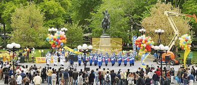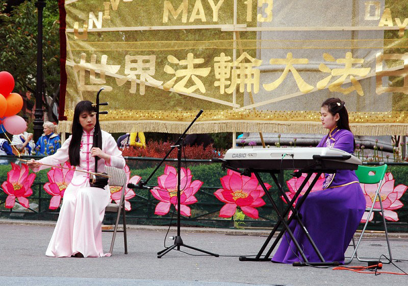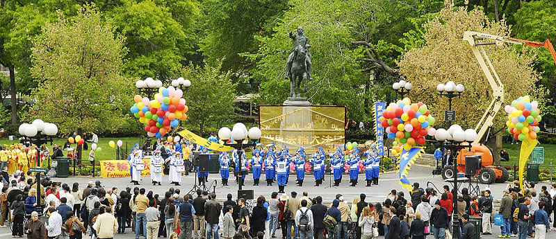今天,纽约法轮功学员以丰富多彩的艺术表演与纽约民众共同欢度这一普天同庆的日子。这一天也是大法洪传于世的十六周年纪念日。