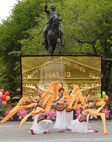 ![]() 纽约法轮功学员的中国传统舞表演 |