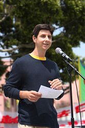 托马斯(Thomas)从欧洲比利时来洛杉矶旅游,他路过码头公园时被精彩的节目所吸引,他表示:这个庆祝活动组织的很好,节目很精彩。今天这里的人很多啊!以前我不知道法轮功,但是旅游真好,我可以发现我曾经不知道的事。