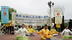 五月十三日是世界法轮大法日,这一天不仅是法轮大法开传的日子,同时也是法轮功创始人李洪志先生的生日。十六年前,李洪志先生将法轮功从长春传出后,以“真、善、忍”为修炼准则的功法,迅速快吸引了近一亿人加入修炼的行列,至今已传播到世界的八十多个国家和地区,更受到了各国政要人士的肯定与褒奖。每年的这个日子,全世界各地的法轮功学员都会举行丰富多彩的庆祝活动,以表达他们对法轮大法的敬爱,并向李洪志先生致以无比感谢之情。