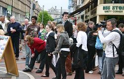 ![]() 许多路人在法轮功真相图片展驻足观看 |