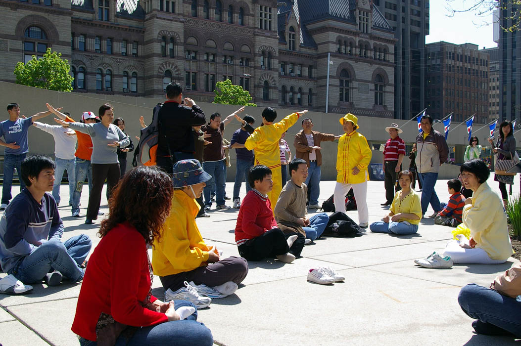 ![]() 法轮功学员在飞利浦广场义务教法轮功功法 |