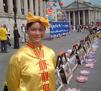 梅与记者一起回顾了她的得法修炼经历。梅是来自香港的华人,职业是公司管理人员,她的丈夫麦克是新加坡华人,在伦敦一所大学工作,修炼法轮功十多年了。梅说,多年来,她一直在做“观察家”,她支持法轮功,相信法轮大法的原则非常好,但是直到二零零五年九月她才真正走入修炼法轮功的队伍。梅说今年的“世界法轮大法日”是她经历的规模最大的大法日庆祝活动,她非常高兴能在鸽子广场向广大英国民众展现法轮大法的美好。