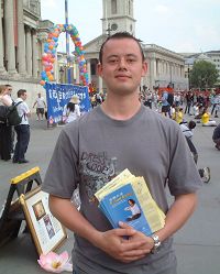 罗伯是个家住伦敦的英国小伙子,他告诉记者说去年夏天首次听说了法轮功,但决定认真修炼是最近二、三个月的事。他现在争取每天坚持炼功,并在周末到摄政公园集体炼功点炼功,他已经读了几遍《转法轮》了,认为这本书告诉他成为更好的人,做到平和、理性,做到真、善、忍。