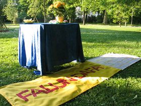 【明慧网二零零八年五月十五日】二零零八年五月十三日晚,在瑞士第三大城市巴塞尔的市中心公园,法轮功学员欢庆世界法轮大法日。