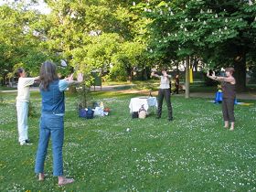 雅典学员炼功洪法 庆祝世界法轮大法日(图)