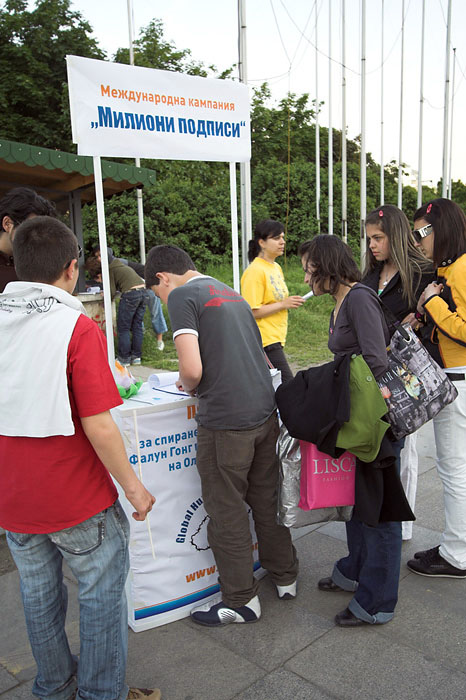很多保加利亚人和外国游客纷纷驻足了解详情,并踊跃签名呼吁制止迫害。签名桌前不时的排起了队。
