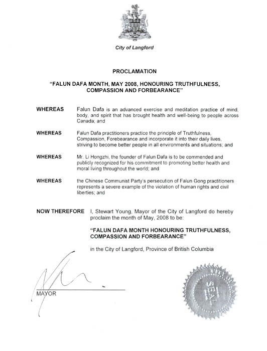 鉴此,我,斯图尔特•杨(Stewart Young),兰格佛市市长,在此宣布二零零八年五月为兰格佛市