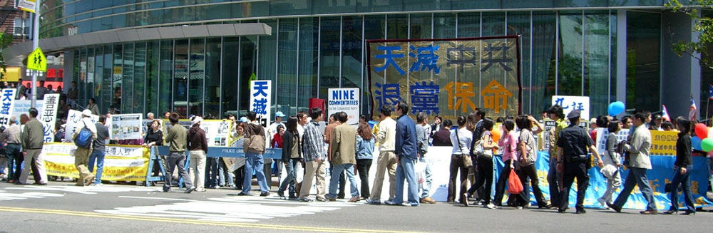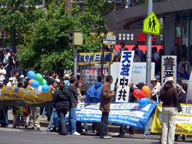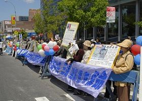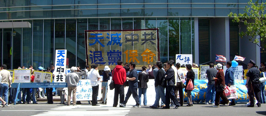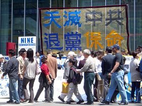 ![]() 纽约法拉盛声援三千六百万勇士退出中共集会现场 |