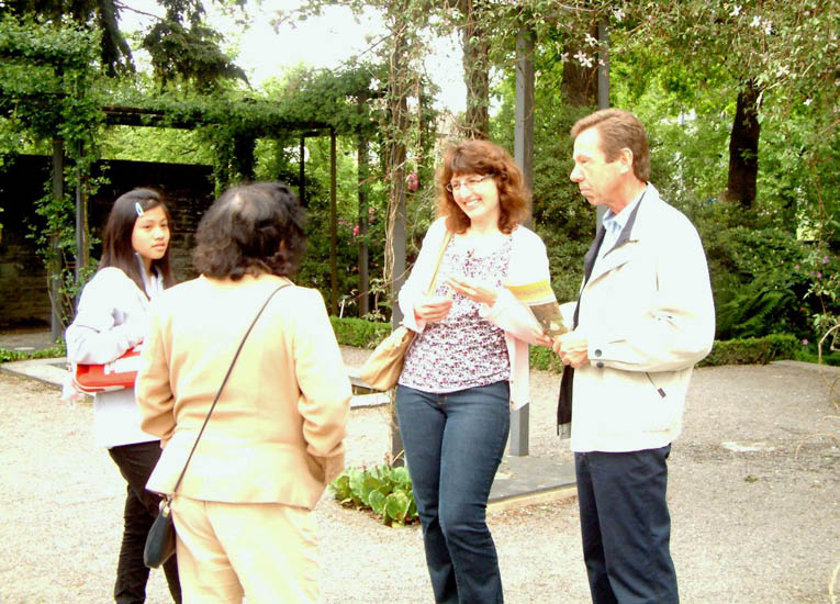 伯尔尼的玫瑰园内不仅有二百多种玫瑰花,同时也是俯瞰伯尔尼市全景的最佳位置,是很多人游伯尔尼的必到之处。法轮功学员选择这里作为炼功点,是为了能让更多的人知道法轮大法,同时也能了解法轮功被中共残忍迫害的真相。所以每次炼功时都会摆上真相材料,当然也少不了给中国游客的中文真相资料。