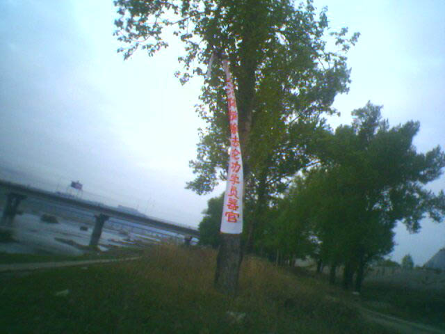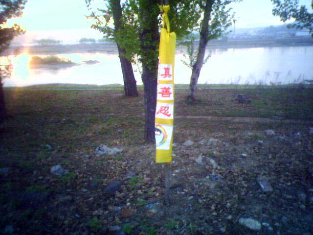 5月13日这天,晨炼的时候,在牡丹江看到了这样的景象,一条条横幅悬挂着树上,上面写着:“世界需要真善忍;世界法轮大法日”、“停止迫害,信仰无罪”、“立即释放被非法关押的法轮功学员”、“立即停止活体摘取法轮功学员器官”等字样,向人们传递着真相。不少老百姓说:共产党表面一样,背地里又一样,做着都是见不得人的事,难怪有人声明退出邪*党-,不愿做邪*党-的陪葬品,原来是这回事。
