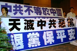 中共政法委书记周永康最近直接指挥、破坏海外声援中国民众退!党!集会和传递人权圣火的活动。周永康利用中共在海外的特务机构,由中共背后控制的华人侨团和学生学者联合会等组织,煽动仇恨,花钱收买地痞流氓肇事,在美国旧金山、洛杉矶、纽约、香港等地攻击参加声援中国民众退!党!集会的华人。尤其五月十七日、十八日、二十日几天之内,全球.退:党!服务中心纽约分部在法拉盛的退!党!服务点和声援退!党!的活动遭到中领馆组织的大规模骚扰和围攻。