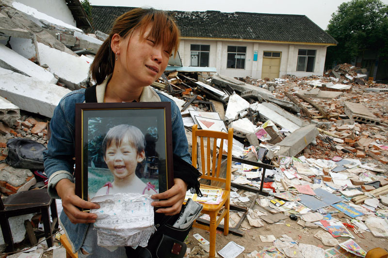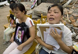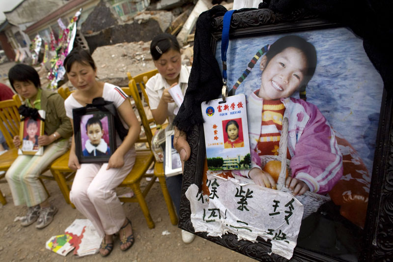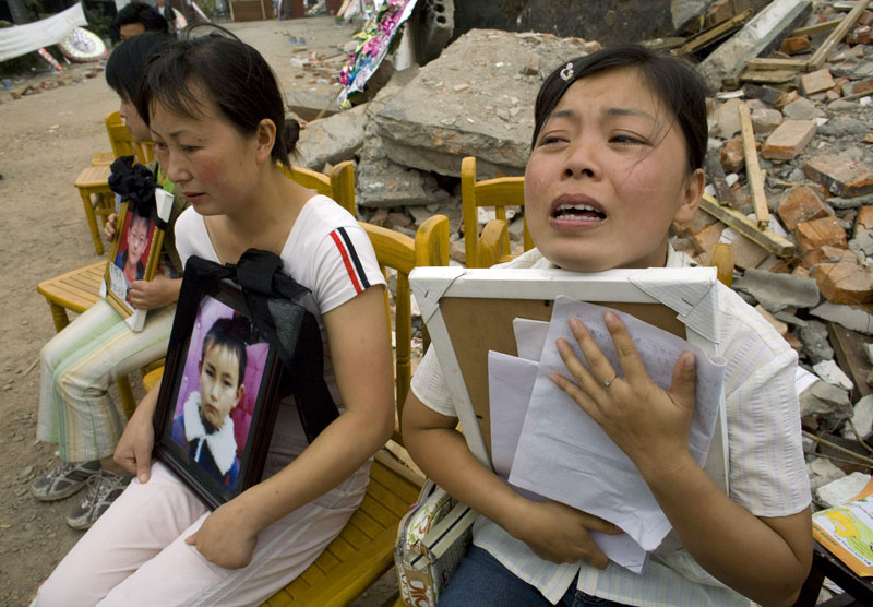 四川地震中的最为令人心碎的死难者是葬身于学校建筑中的孩子们。教学设施建筑质量的低劣,酿成了无数悲剧,有关腐败严重造成学校建筑质量低劣的说法不胫而走。如今数以百计的悲伤父母们在聚源聚集在一起,散发请愿书,要求为他们死去的孩子设立年度纪念日,惩罚学校倒塌事故责任官员和建筑商,并获得赔偿。