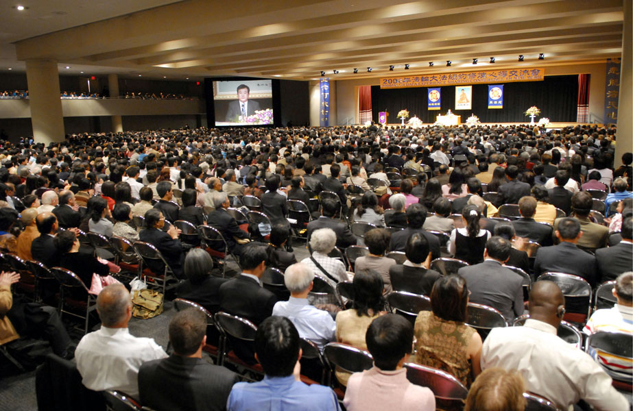 当师尊步入会场时,全场与会者立即起立,报以长时间热烈的掌声,在师尊的示意下方落座。来自中国大陆各地及世界各地的法轮功学员在提问中纷纷向师尊表示感谢和问候。