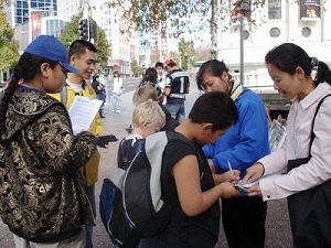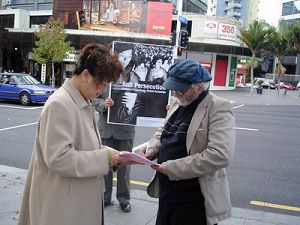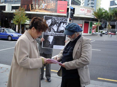 【明慧网二零零八年五月二十七日】二零零八年五月二十四日,新西兰最大城市奥克兰市中心的AOTEA广场上,法轮功学员摆放了很多展板,揭露中共对法轮功长达近九年的残酷。不少人驻足观看,有些人当听到“我们在征签……”时,马上停下来,询问详情。了解到中共迫害善良修炼者的暴行后,人们毫不犹豫的签下了自己的名字,表达对正义的支持,共同谴责中共的暴行。