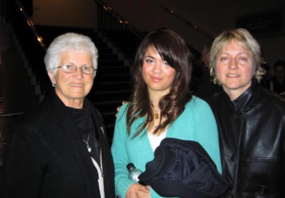 ![]() 格楚德(左)与女儿阿兰丝塔西亚及朋友杰科依(右) |