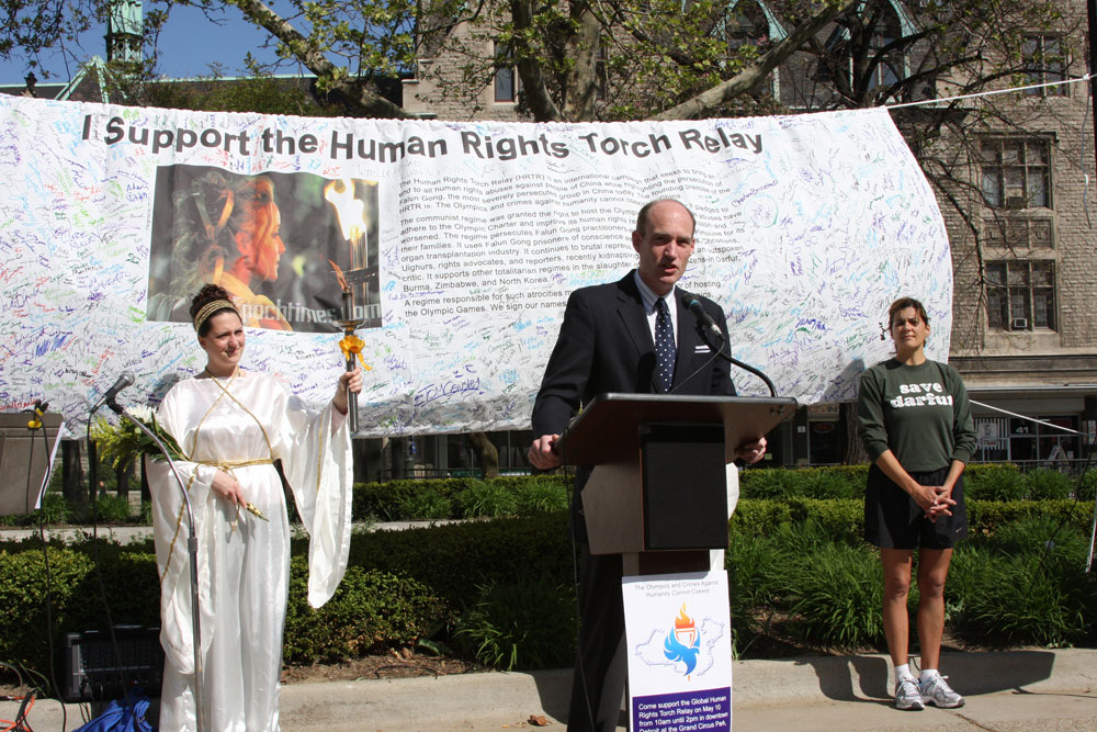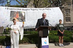 ![]() 这个大横幅在底特律人权圣火新闻发布会上 |