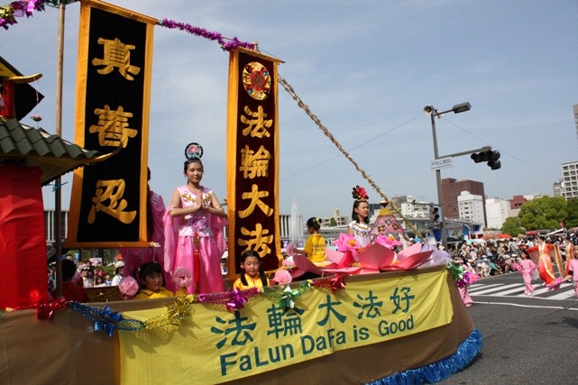 与往年一样,本年度历时三天的“广岛鲜花节”,仍以首日拉开节日序幕的巡游表演为重中之重。历年皆受到大会组委会好评和观众喜爱的法轮大法的参游队伍,今年由近二百人组成。在巡演项目中,往年的花车改换成“法船”,并增加了天国乐团。他们给广岛市民带来惊喜,也给这个都市带来一片生机与活力。