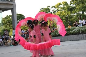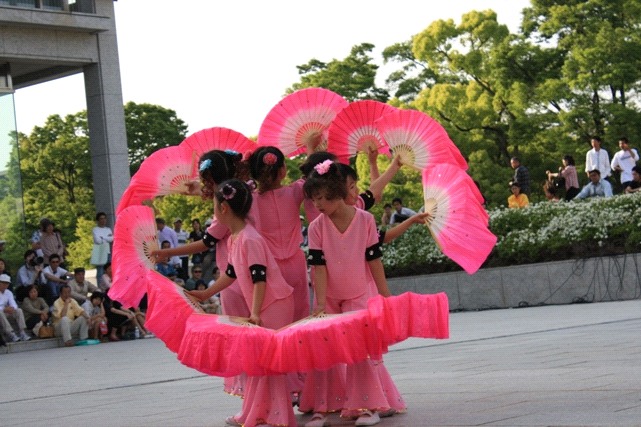 除了巡游表演外,法轮大法团体还参加了当日下午在主会场举办的舞台表演。他们为广岛市民献上了小弟子的彩绸舞和扇子舞,天国乐团的演奏,以及功法演示等。他们的每个节目都受到观众喜爱,获得了阵阵掌声。