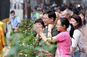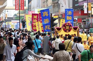 ![]() 行人拍掌欢迎法轮功学员反迫害游行 |
