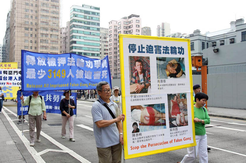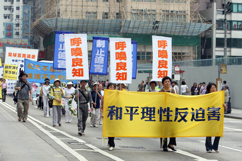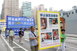 在五月一日的反迫害集会上,学员们谴责中共当局以奥运为借口加剧迫害法轮功,由去年年底至今年三月,已知有超过一千八百宗大陆法轮功学员被非法绑架案例,同时还有多名法轮功学员被迫害致死,其中包括北京音乐人于宙。目前,因坚持信仰而被非法关押在大陆的香港学员也有三人。集会呼吁本地及国际社会共同制止中共对善良人民的迫害。