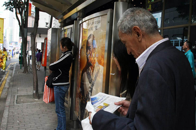 ![]() 民众接过义工派发的退!党!特刊,细心阅读。 |
