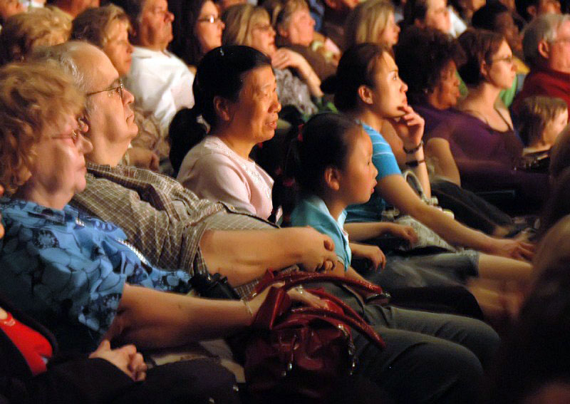 胡女士的夫婿Bruce Eures是一位商业分析师,他说:“我在泰国出生,在美国长大。美国离太太的家乡成都很远,我想让她找到回家的感觉,所以带她来了。这个演出很有趣,我很喜欢。我在大学学过中国历史。我很喜欢那个关于法轮功的精神运动的节目。我也想学习中文,我太太就可以教我啊。”