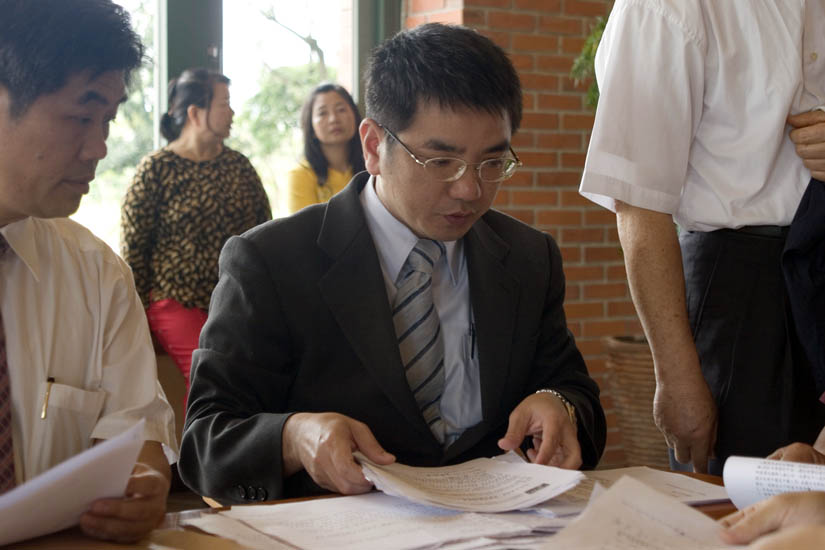 ![]() 吕国华县长(右)签署“百万签名反迫害”,谴责中共迫害法轮功 |