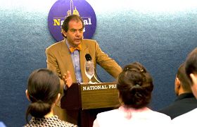 “追查迫害法轮功国际组织”代表夏一阳在新闻发布会上讲述了中共对海外华人操控和统战的战略。