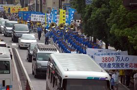 游行结束后,东京池袋退!党!服务中心负责人刘洪峰接受媒体采访时介绍说:池袋是在日华人聚集最多的地区,我们在那儿设立了退!党!服务中心,大量的华人知道退!党!真实的消息,越来越多的华人在觉醒中。可中使馆在四川地震期间利用这些年轻的学生,利用他们血气方刚的一面,以仇恨的文化教育对他们煽动。他们把我们退!党!服务中心的旗帜啊、横幅啊,当时就扯下来,还要打我们的义工。而我们的义工是用纯善的精神,不断的劝善,在这过程中通过不断的跟他们接触。有些人看了《·九·评*共产党》也理解了我们,可有些人还是受中共仇恨宣传的影响,不明白真相,我们要继续做下去,让他们了解真相。现在不但在池袋,我们在东京车站、上野、新宿也有退!党!服务中心,最近大阪有三处也成立了退!党!服务中心,都是在日华人聚集较多的地方。看到越来越多的中国人觉醒,我们更有信心做下去。